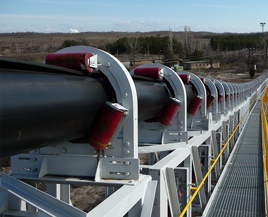 A correia transportadora tubular é uma correia especial que se fecha em formato de tubo enquanto transporta o material. Desse jeito, a carga segue protegida, sem derramar, com menos poeira e menos sujeira no caminho.